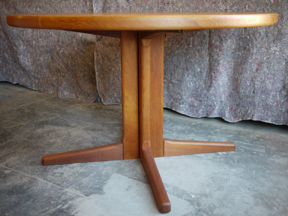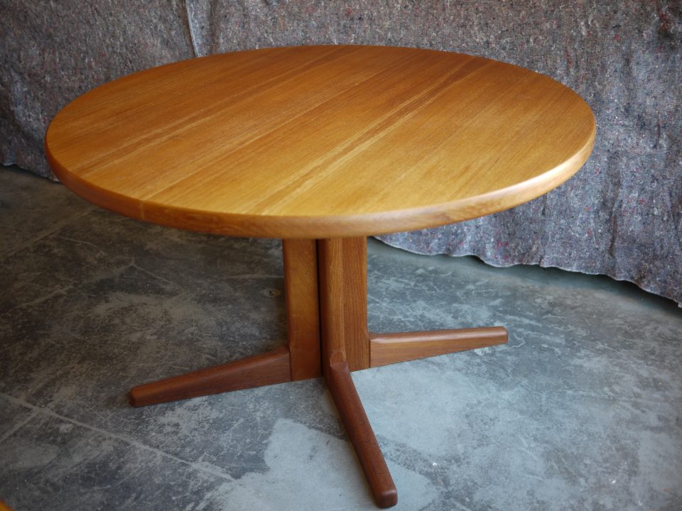 2026-02-14 17D-28 No 17D-28 ROUND DINING TABLE / TEAK Φ: 116cm H: 71,5cm (W49cmのエクステンション天板が2枚付属します) PRICE : ¥321,200(税込) 脚の形状に特徴のある丸型ダイニングテーブルです。幕板がないので比較的すっきりとした印象のデザインだと思います。エクステンションの天板は2枚付属し、1枚でも2枚でも追加し広げて使うことができます。 Home › Furniture › 17D-28 関連記事 15R-3 15N-10 15R-3 11N-18 15K-6 17S-4 17D-33