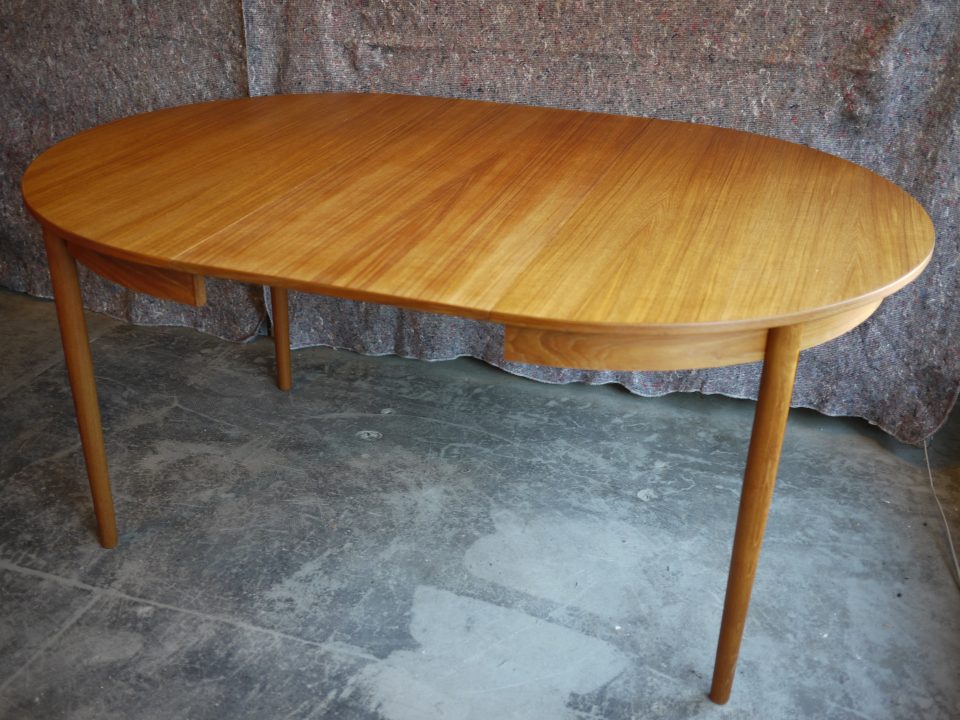 2026-02-14 17D-33 No 17D-33 ROUND DINING TABLE / TEAK Φ: 115cm H: 75cm (W49cmのエクステンション天板が1枚付属します) PRICE : ¥ 283,800(税込) 気持ち小さ目な丸型ダイニングテーブルです。天板にいくつかダメージがありますので許容できる範囲なのかご確認いただければと思います。 Home › Furniture › 17D-33 関連記事 16C-3 15B-10 16G-7 15I-4 16C-2 17D-28 17S-1